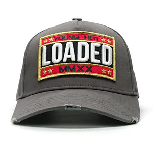 This baseball cap features YHL LOADED Colour Patch embroidered on the front of the cap. There is a canvas back with a YHL logo patch on the side.