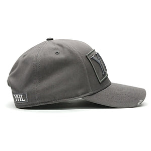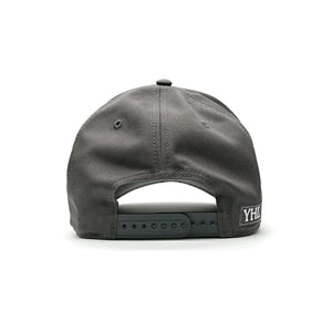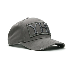 This baseball cap features YHL Logo embroidered on the front of the cap in grey emboss stitch. There is a canvas back with a YHL logo patch on the side.