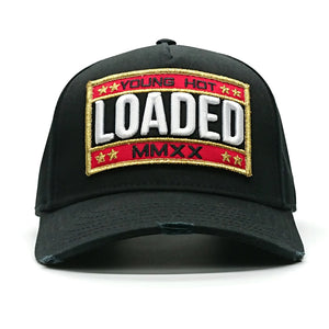 This baseball cap features YHL LOADED Colour Patch embroidered on the front of the cap. There is a canvas back with a YHL logo patch on the side.